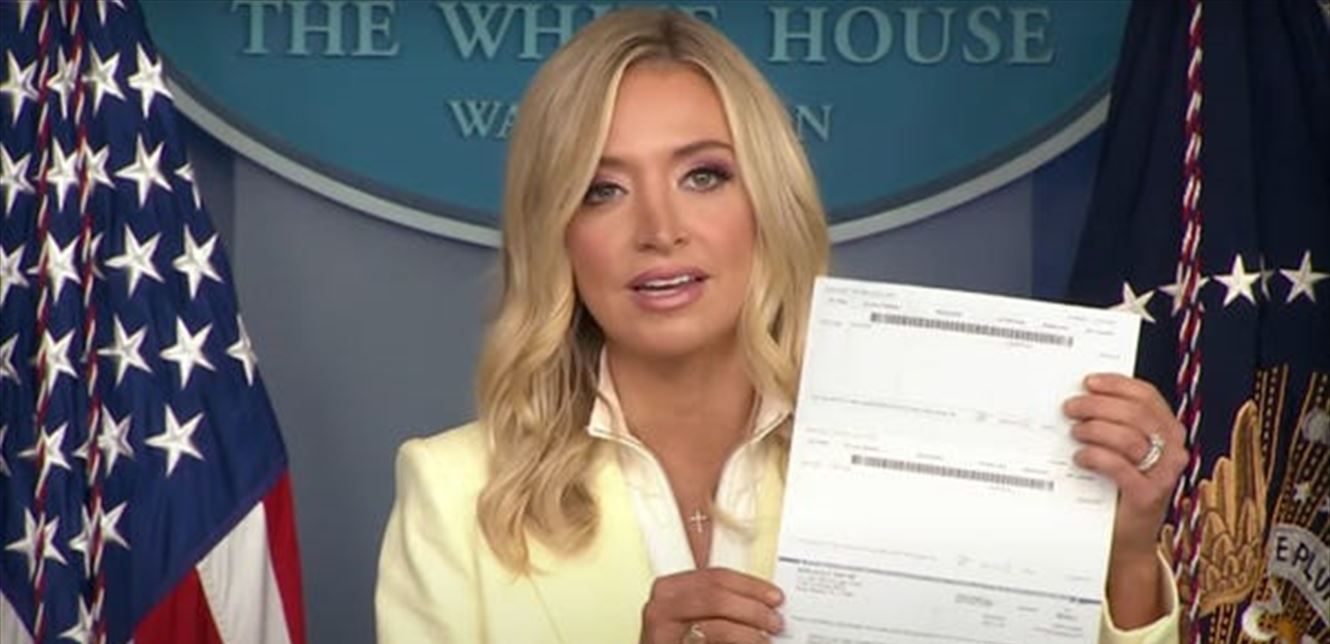 سربت المتحدثة باسم البيت الأبيض كايلي ماكيناني، أثناء موجز صحافي أمس صدفة بيانات مصرفية شخصية للرئيس دونالد ترامب.