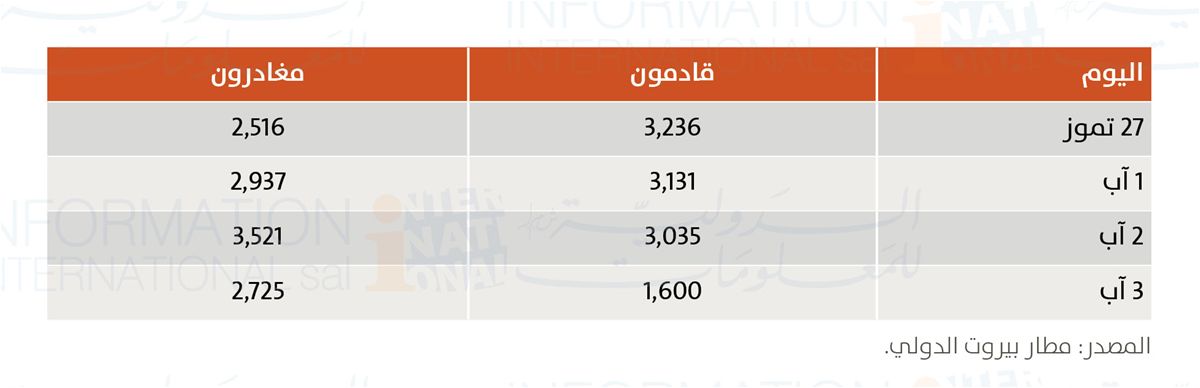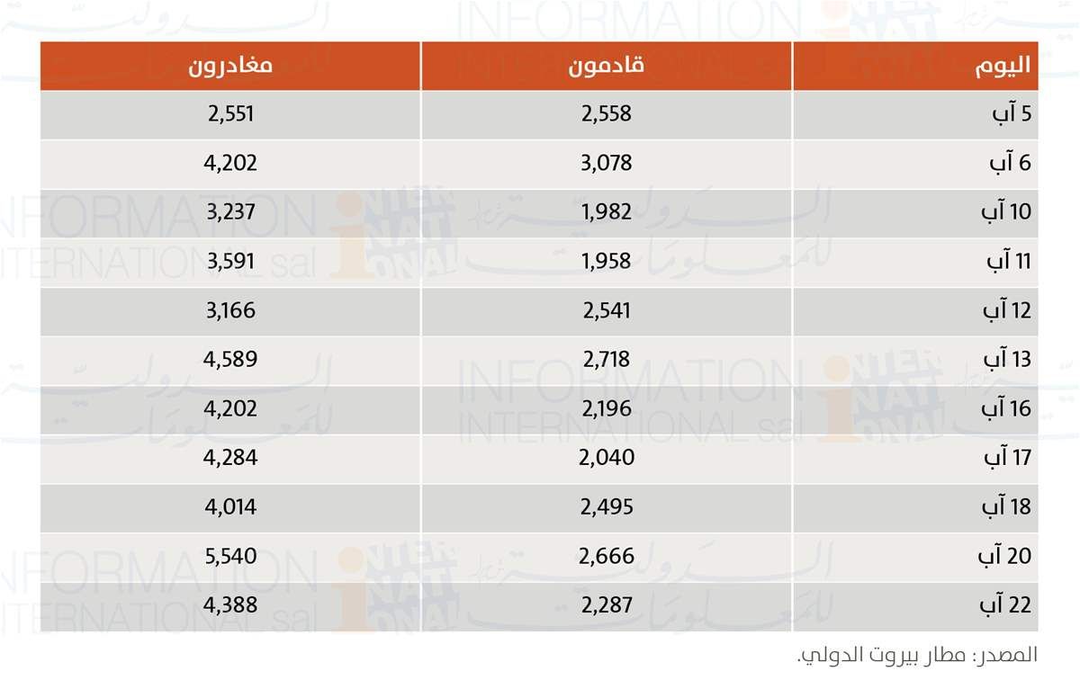 متوسط عدد المغادرين: 2925 مغادراً يومياً.