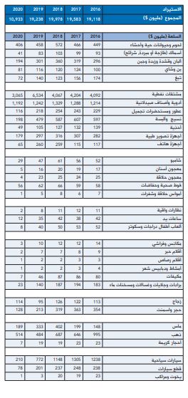 فقد تراوح مجموع الواردات في السنوات الممتدة من 2016 الى 2019 ما بين 19 ملياراً و 118 مليون دولار كحدّ ادنى مسجّل في العام 2016 و19 ملياراً و 978 مليون دولار كحدّ اقصى مسجّل في العام 2018.