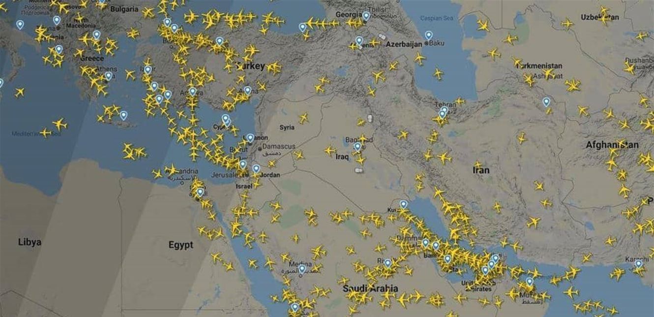 وتظهر بيانات تطبيق فلايت رادار 24 وإفادات من شركات طيران، أن العديد من شركات الطيران غيّرت مسارات جزء كبير من الرحلات إلى فوق السعودية وأجزاء من مصر.