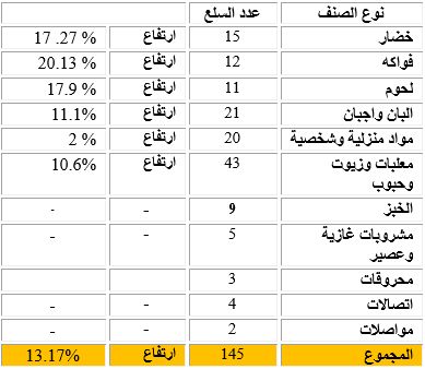 سجّلت أسعار السلع والمواد الغذائية، في الفترة الممتدة منذ 15 شباط إلى 31 آذار 2020، ارتفاعاً بمعدّل 13.17 بالمئة، وفق إحصاءات جمعية المستهلك، التي أشارت إلى أنه بموجب هذه الأرقام، يكون الارتفاع منذ 17 تشرين الأول 2019، قد سجّل معدّل 58.43 بالمئة.