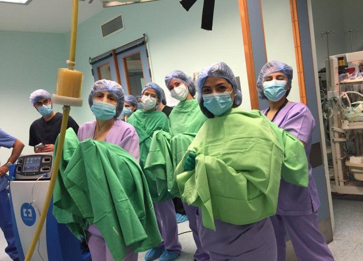تمّت متابعة الحالة بشكل دقيق لمعالجة المضاعفات التي قد تواجه الام والأجنّة وتفاديها، لذلك أدخلت الى المستشفى منذ 5 أسابيع تقريباً»، كما أوضح الدكتور الحجل، «وقد تقرّر إجراء العملية القيصرية أمس الثلثاء 5 أيار 2020 في الشهر السابع والنصف من الحمل». وكانت جميع الأقسام التابعة لقسم الولادة من أطباء أطفال وقابلات قانونيات وممرضات من قسم العناية الفائقة على أتمّ الاستعداد لاستقبالهم.