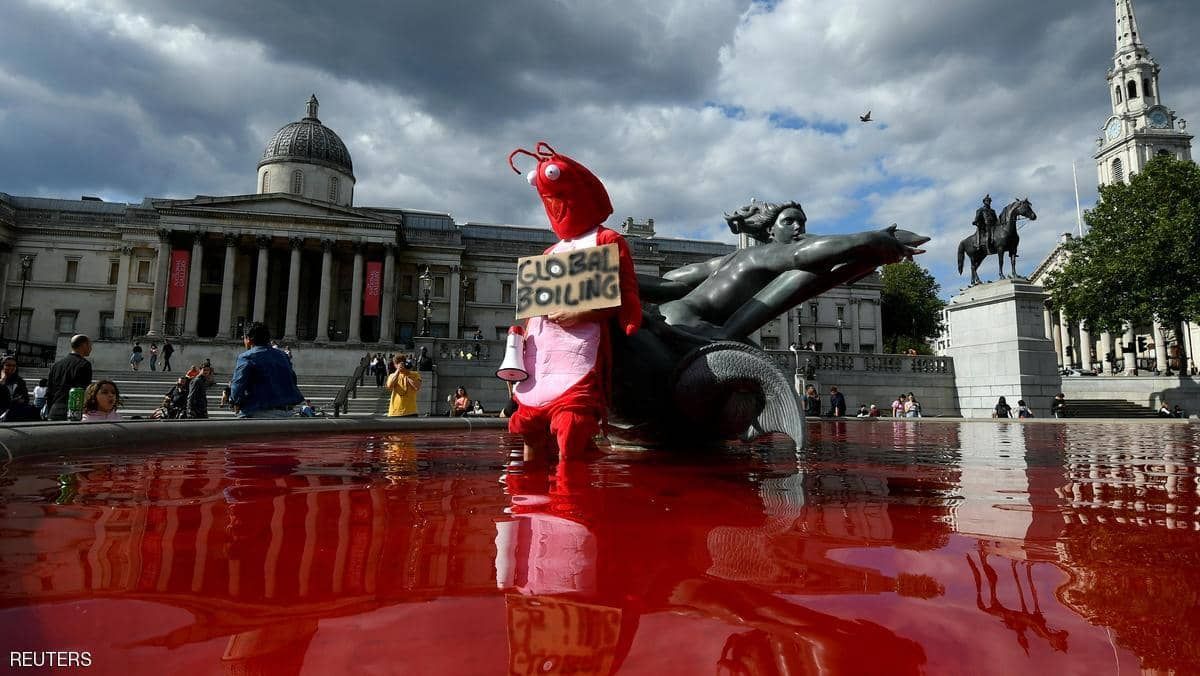 فوجئ سكان العاصمة البريطانية لندن، بـ”دماء” تنهمر من نافورة “الطرف الأغر”، وهي أحد أبرز معالم المدينة، بعد أن ألقى فيها مناصرون لحقوق الحيوان، طلاء باللون الأحمر.