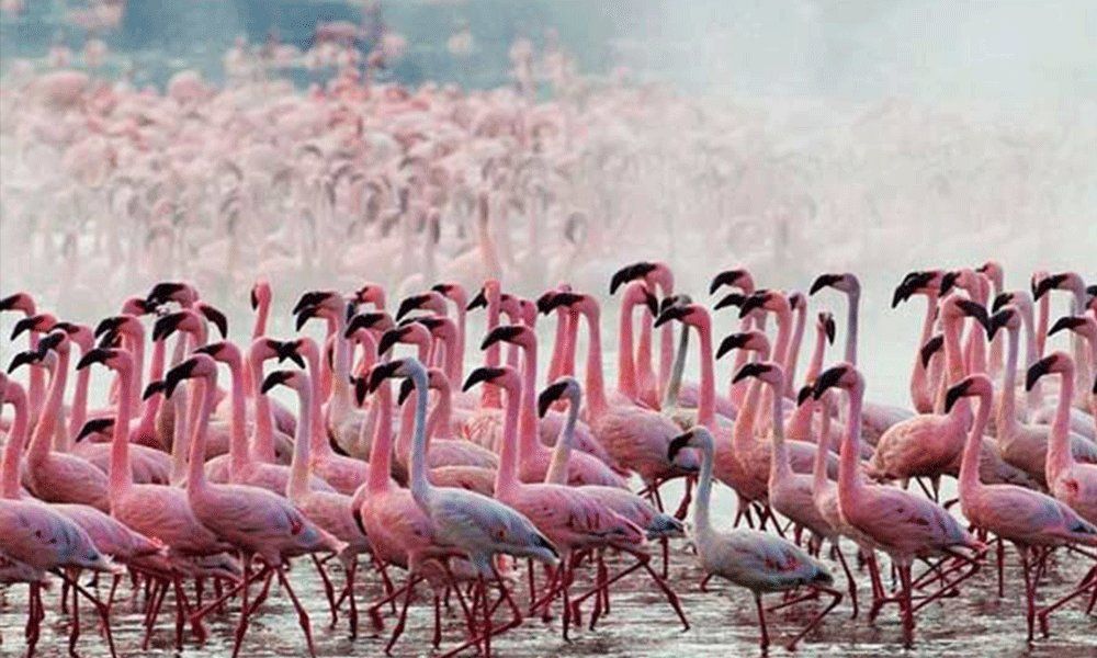 يتميز طائر الفلامينغو باللون الوردي المحمر الجميل الذي يجعله أحد أجمل الطيور في العالم، ويطلق على مجموعات طيور الفلامينغو اسم المستعمرات او الاسراب وكل مستعمرة تعمل على حماية بعضها البعض من الحيوانات المفترسة بالاضافة الى رعاية صغارها، ويعتقد العلماء ان طائر الفلامينغو يتزوج بزوجة واحدة ويميل الى البقاء مع انثاه لبقية حياته، ويقوم الازواج بعمل الاعشاش من اكوام الطين وتضع الانثى بيضة واحدة في كل مرة.