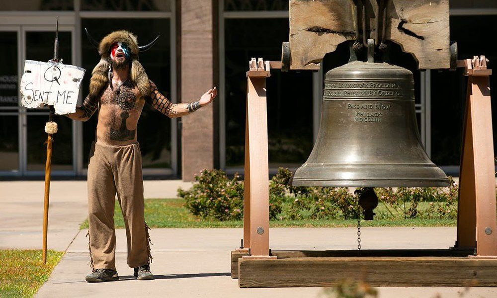 وفي قلب هذه المؤامرة صور الرجل “ذي القرنين” الذي يلبس الفرو، ويحمل علما أميركا معلقًا على رمح في يده. وروًج البعض صورًا للرجل خلال مظاهرات حركة “أنتيفا” اليسارية كتدليل على إنه عنصر تخريبي يحاول تشويه صورة أنصار ترامب.
