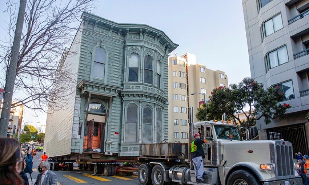 نقل منزل يبلغ من العمر 141 عامًا، يتكون من طابقين، في سان فرانسيسكو، من موقعه الأصلي إلى عنوان جديد في عملية استغرقت نحو ست ساعات.
