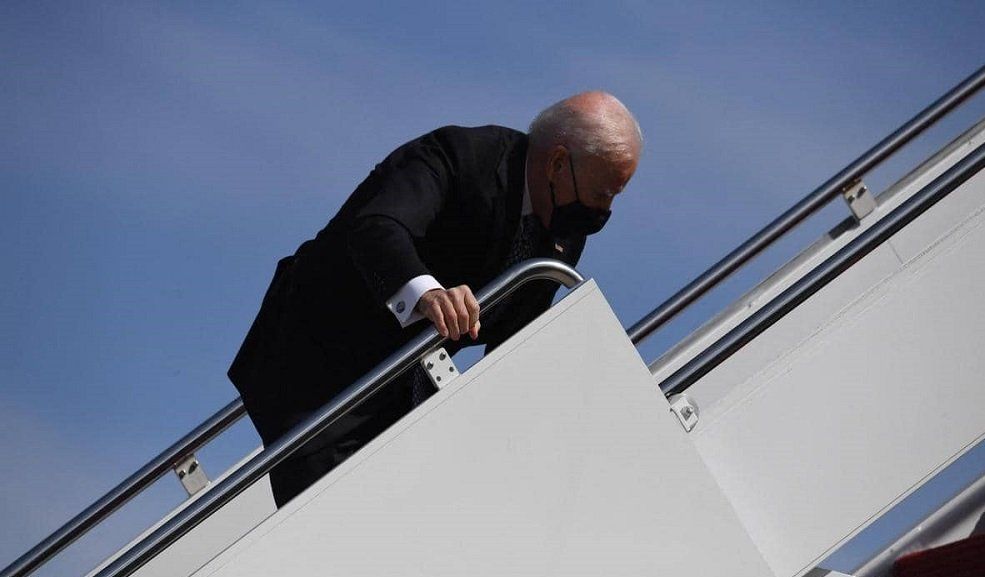 تعرض الرئيس الأميركي، جو بايدن، يوم الجمعة، لموقف محرج، عندما سقط على سلم الطائرة وهو يصعد إلى الـ”إير فورس وان”، لكنه لم يتعرض لأذى وواصل الصعود بشكل طبيعي.