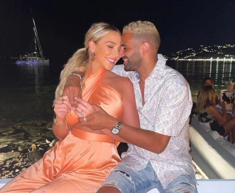 ونشرت وارد، صورا جمعتها بالنجم الجزائري على جزيرة ميكونوس اليونانية، وظهرت ترتدي خاتم الخطوبة وبجوارها محرز.