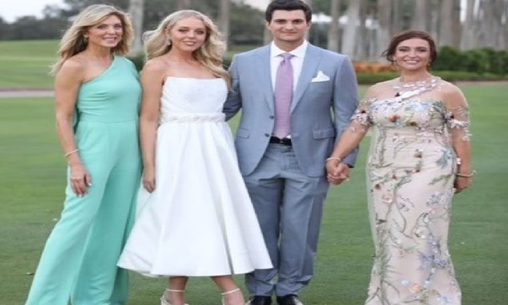 وظهرت في الصور ابنة ترامب الكبرى إيفانكا (41 عاماً)، وزوجها جاريد، وابنه إريك (38 عاما)، بالإضافة إلى زوجته لارا، وجد العروس ستانلي إدوارد مابلز، ووالدا العريس مسعد وسارة بولس.