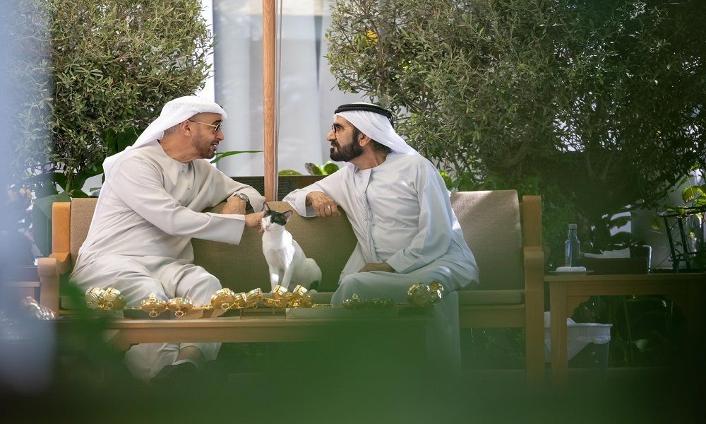 توسطت قطة الرئيس الإماراتي الشيخ محمد بن زايد وحاكم دبي الشيخ محمد بن راشد خلال لقائهما في استراحة المرموم في دبي، يوم السبت الماضي، حيث استعرض الطرفان المواضيع التي تهم شؤون المواطن ومصالحه.