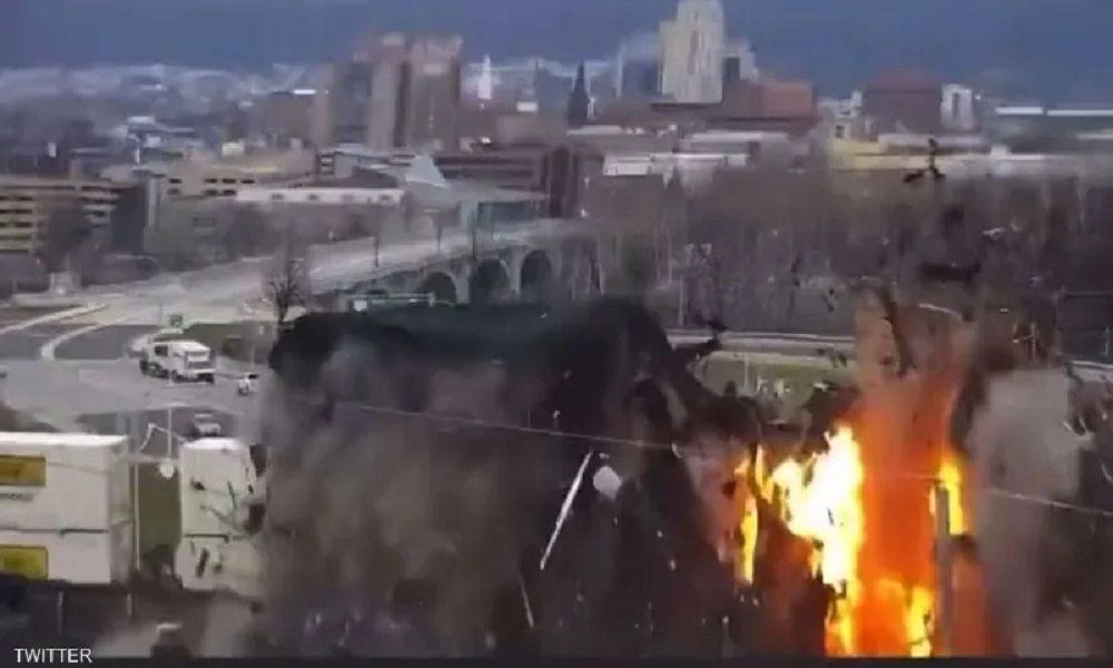 وأظهرت لقطات تلفزيونية اندلاع حريق وسط الأنقاض بعد الانفجار فيما يحاول عناصر الإطفاء إخماده.