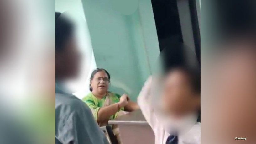 وتظهر اللقطات، معلمة في مدرسة خاصة في أوتار براديش، وهي تأمر الطلاب بصفع الطفل البالغ من العمر 7 سنوات، لأنه أخطأ على ما يبدو في جدول الضرب.