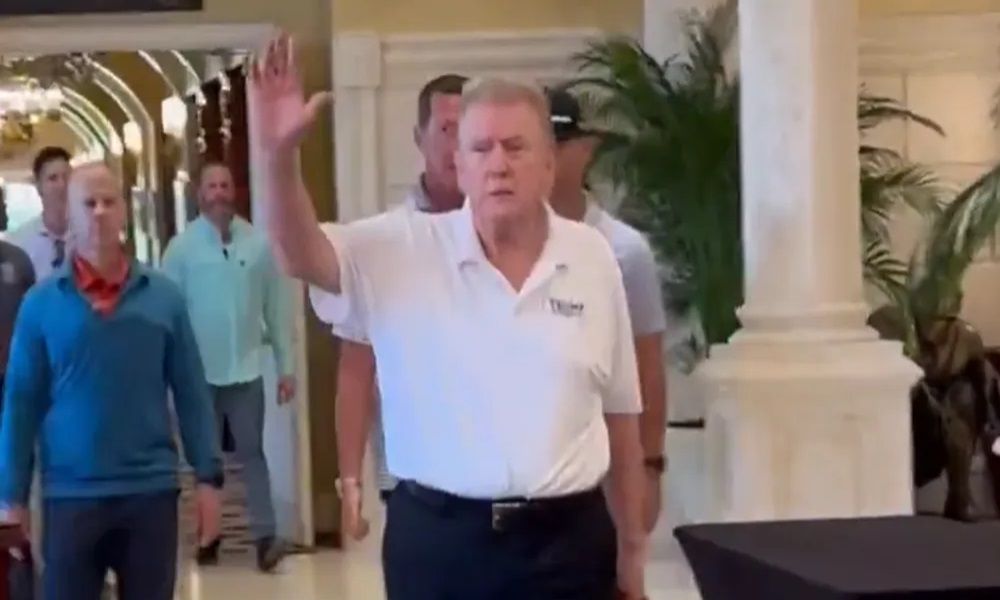 وظهر ترامب في مقطع فيديو متداول على وسائل التواصل الاجتماعي، وهو يقترب من عدد من الأشخاص، ويلوح بيديه ويسألهم عما إذا كانوا يستمتعون بوقتهم. ثم يسألهم: “هل الجميع جمهوريون؟”.