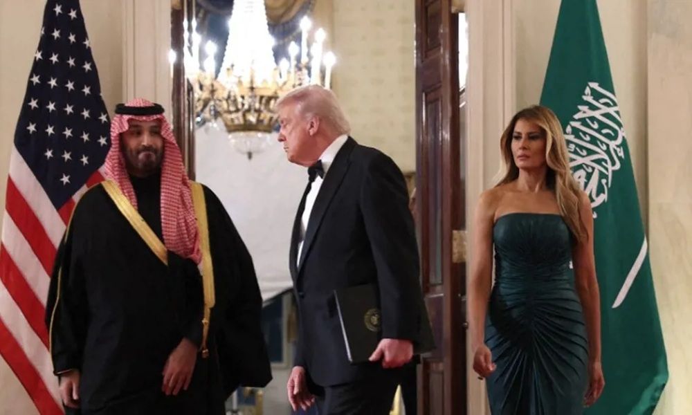 وتألّقت ميلانيا بفستان من تصميم المصمّم اللبناني العالمي إيلي صعب، اختارت فيه اللون الأخضر الزمردي تماشياً مع ألوان العلم السعودي، ما لفت الأنظار برُقيّ الفستان وأناقة السيدة الأولى.