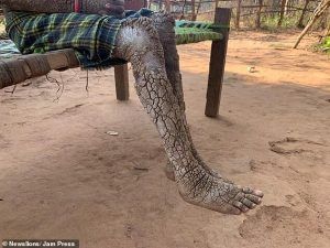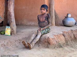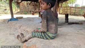 وتغطي قشور قاسية ذراعي وساقي الطفلة راجيشواري البالغة من العمر 7 سنوات، والتي تعيش في ولاية تشهاتيسجار الهندية.