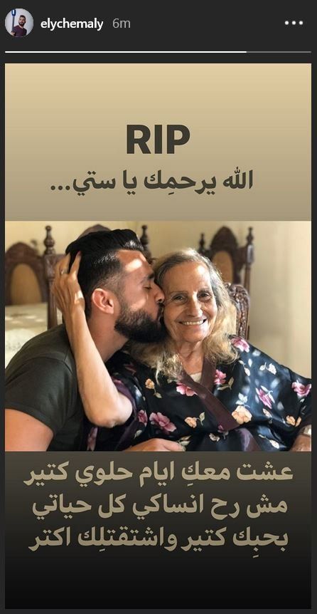 ونشر إيلي صورة تجمعه بجدته عبر خاصية الستوري عبر حسابه الخاص على تطبيق إنستغرام نعى من خلالها جدته.