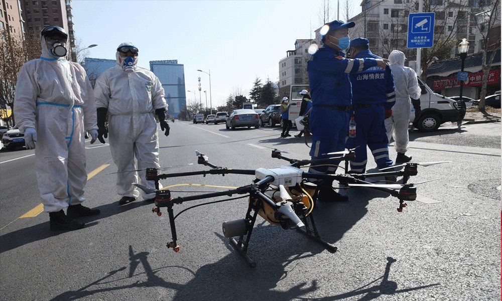 وقامت السلطات الصينية باستخدام طائرات “درون” لتوجيه السكان ومراقبة تحركاتهم وتنبيههم حول وجود أي خلل بالتقيد بالتعليمات العامة، تخرج منها رسائل صوتية وتنبيهات في مختلف المناطق الريفية وفي شوارع المدن المزدحمة.