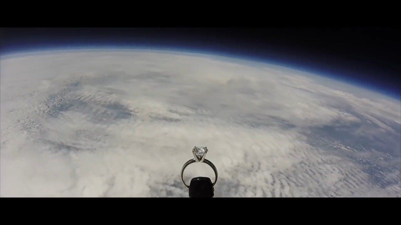 فاجئ طيار بسلاح الجو الأميركي حبيبته بعرض طلب فيه يدها، بعد رحلة لبالون حمل خاتم الخطبة إلى الفضاء وعاد به إلى الأرض.