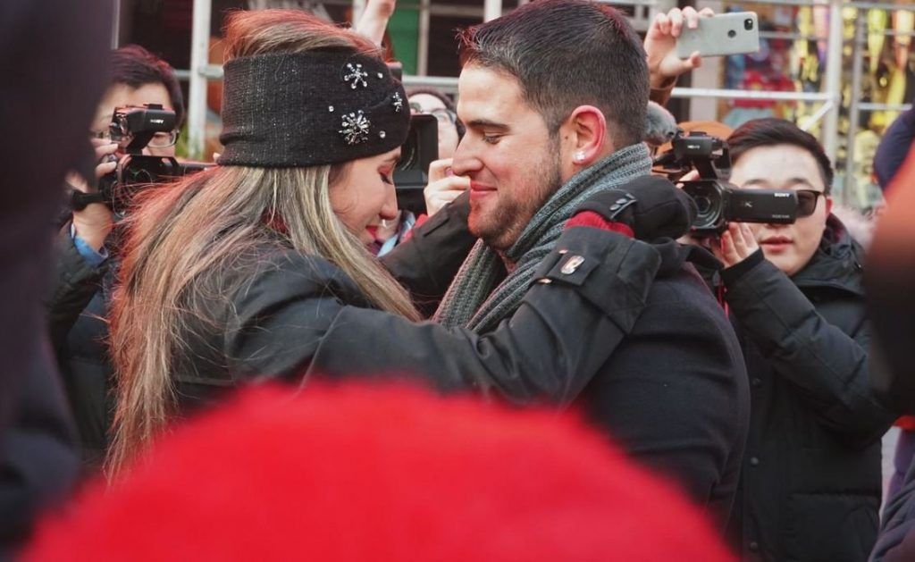 كما تم بث عروض زواج مفاجئة على اللوحات الإلكترونية الشهيرة داخل الساحة، وجددّ عدد من الأزواج نذورهم في الساحة.