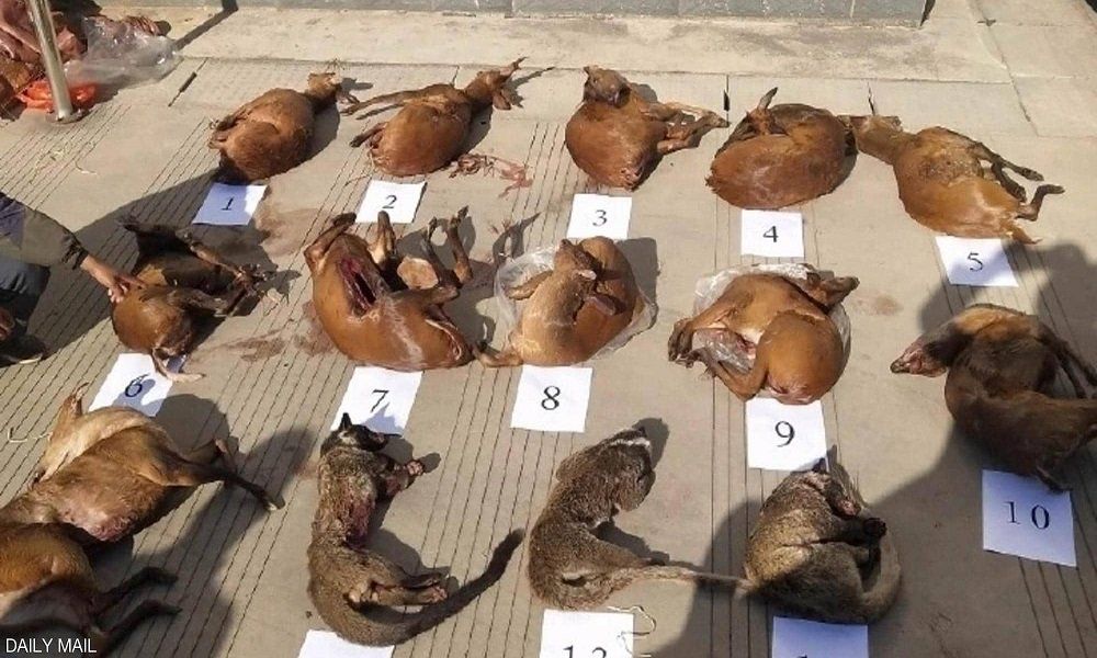 فقد اعتقلت الشرطة الصينية أحد المهربين المشتبه بهم، بعد إلقاء القبض عليه وهو ينقل مجموعة من الحيوانات البرية “الغريبة” النافقة، التي حصل عليها من محمية طبيعية يحظر الصيد فيها جنوبي البلاد، خصوصا في ظل انتشار “كورونا”، إذ حاول تهريب 11 من الأيائل الصغيرة النافقة بالإضافة إلى 3 قطط زباد، المعروف أنها تحمل فيروس “سارس”، الذي قتل مئات الأشخاص عام 2003.