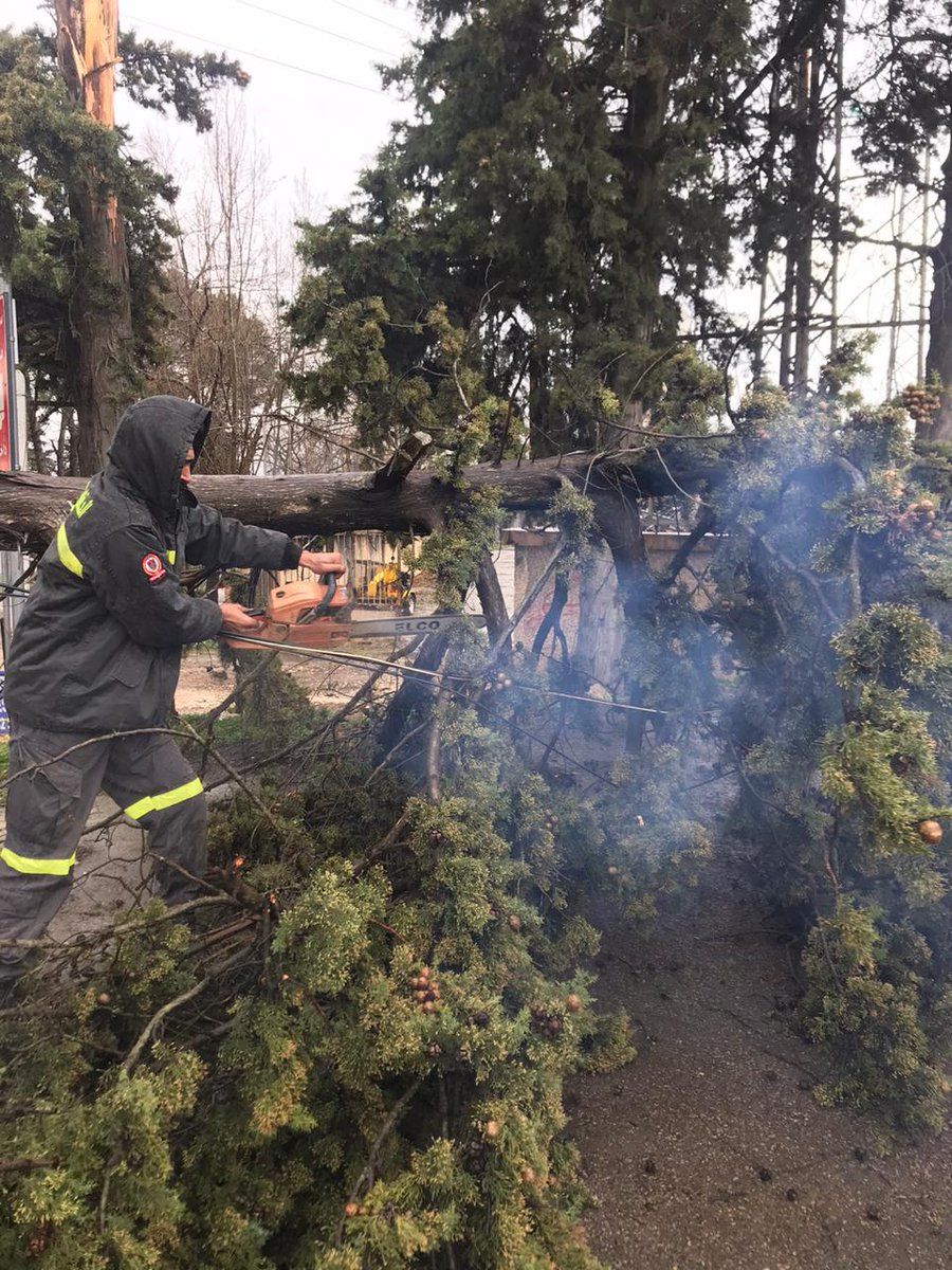 من جهة أخرى، عمل عناصر من الدفاع المدني على ازالة شجرة اثر سقوطها وسط الطريق العام في الكحلونية – الشوف، وذلك لتسهيل حركة المرور وتمكين المواطنين من متابعة سيرهم بأمان. الأمر نفسه تكرر في برمانا حيث سقطت شجرة وسط الطريق العام في برمانا – المتن. المشهد نفسه حصل في البياضة والرابية وشحيم وبيت الشعار وديك المحدي وضبية وقرنة شهوان والمنصورية حيث سقطت لوحة إعلانات وسط الطريق.