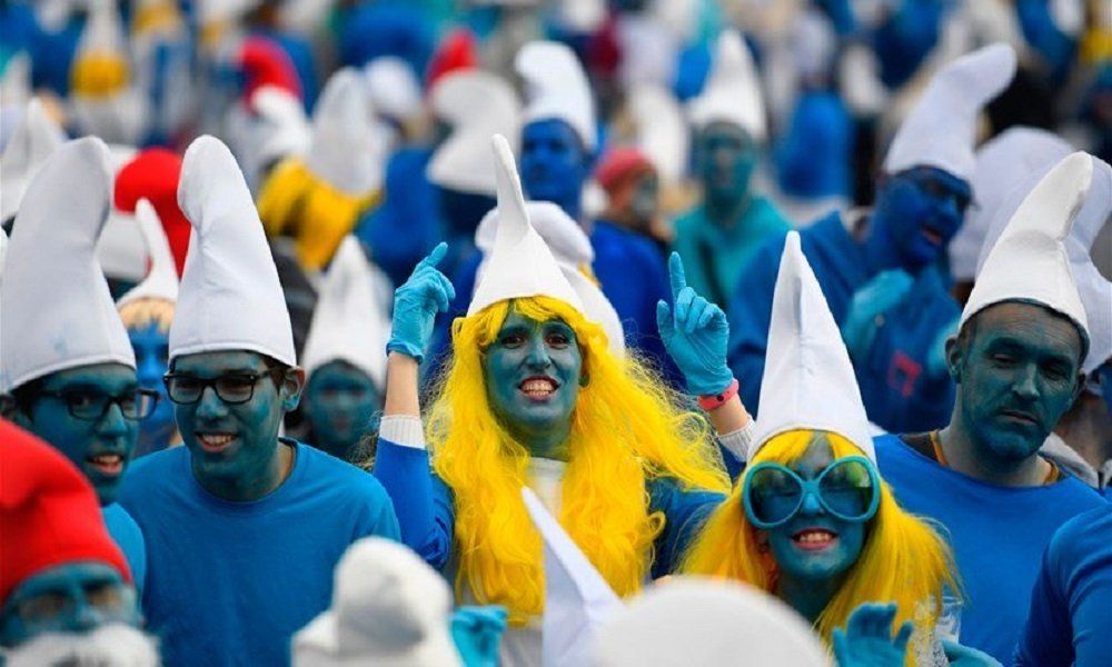 وجاء هذا الحدث، الذي يشمل الرسومات باللون الأزرق على وجوه الآلاف وأجسامهم ليشبهوا شخصيّات السنافر، قبل يوم من منع فرنسا جميع التجمعات التي تضم أكثر من ألف شخص في محاولة لتفادي انتشار الفيروس.