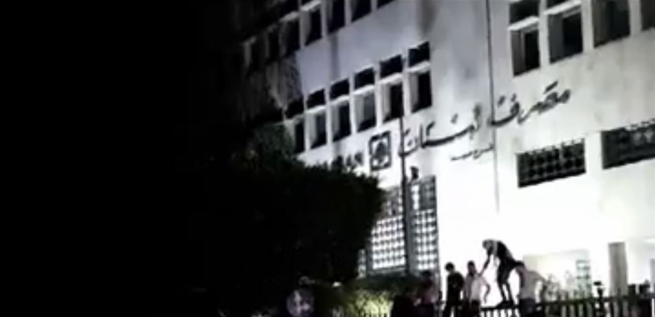 وعمد عدد من الشبان الى تسلق البوابة الحديدية للمصرف ، فيما قام آخرون برشق الحجارة والمفرقعات النارية باتجاه المبنى.