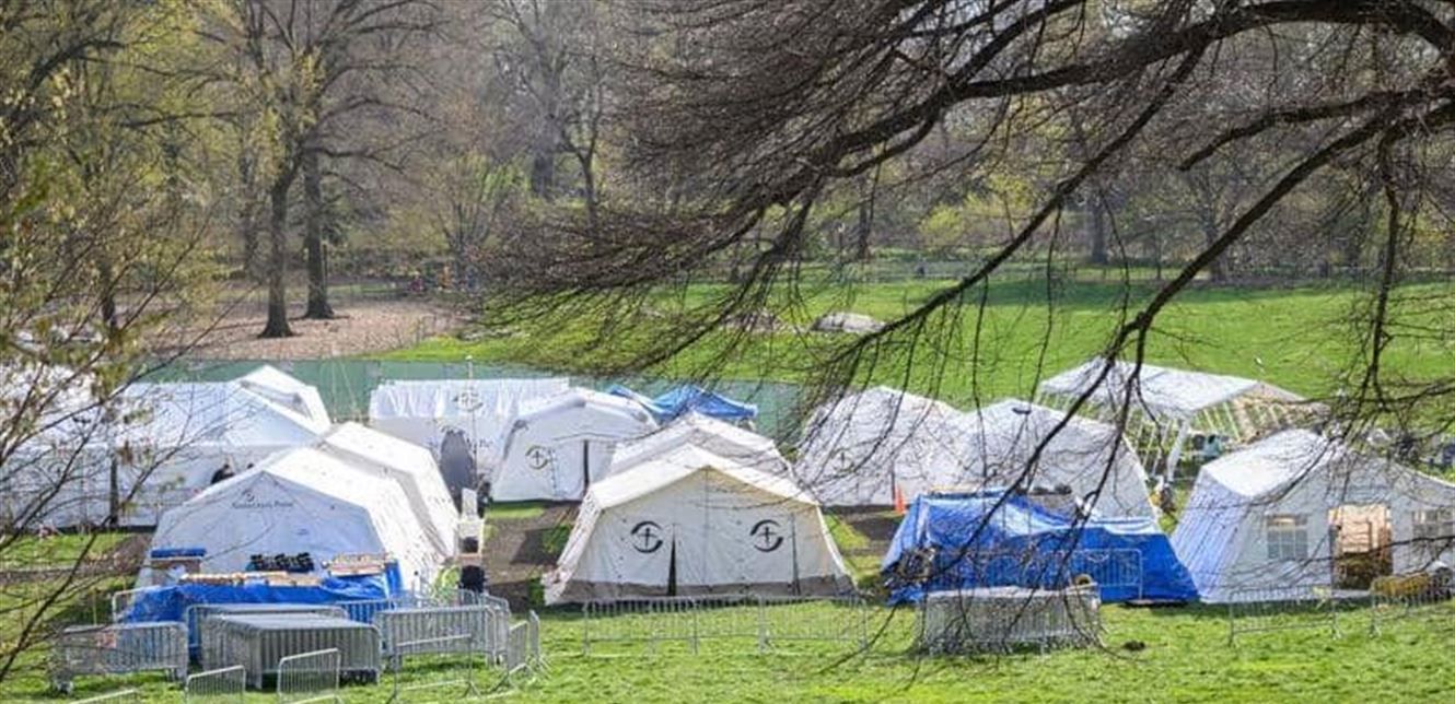 وفي نهاية آذار الماضي، نصبت 12 خيمة طبية مجهزة بآلات تنفس اصطناعي قبالة مستشفى "ماونت سيناي" بنيويورك لتعزيز طاقة استيعابه خلال أزمة فيروس كورونا المستجد.