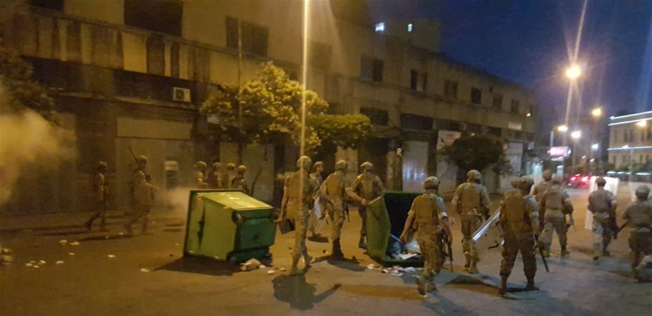 وعلى الفور تدخلت عناصر الجيش اللبناني التي تقوم بدوريات راجلة وتلاحق عددا من المحتجين الذين يلقون الحجارة باتجاههم وبدورهم يردون باطلاق الرصاص المطاطي والقنابل المسيلة للدموع.