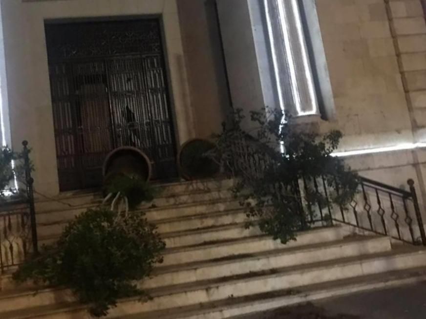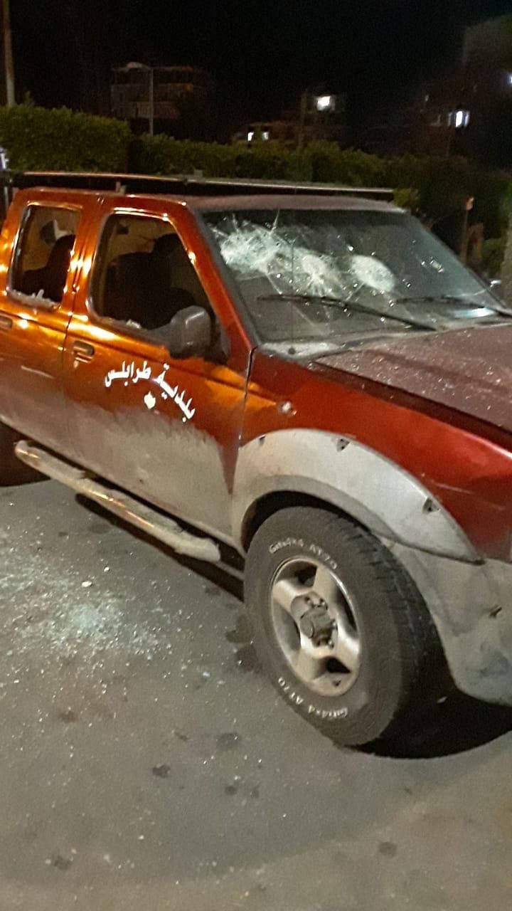 اقدم عدد من المحتجين على تكسير مدخل بلدية طرابلس وتخريبه، كما اقدم المحتجين على تكسير زجاج سيارة تابعة لشرطة بلدية طرابلس.