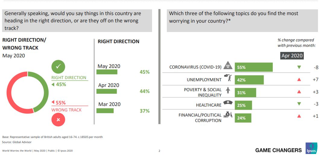 وعلى صعيد التفاؤل بالمستقبل، قال أغلب المستطلعة آراؤهم إن بلادهم تسير في الاتجاه الخاطئ بنسبة 55%، فيما قال الـ 45% الآخرون إنها تسير في الاتجاه الصحيح، وهو اختلاف كبير عن الاستطلاعات السابقة.