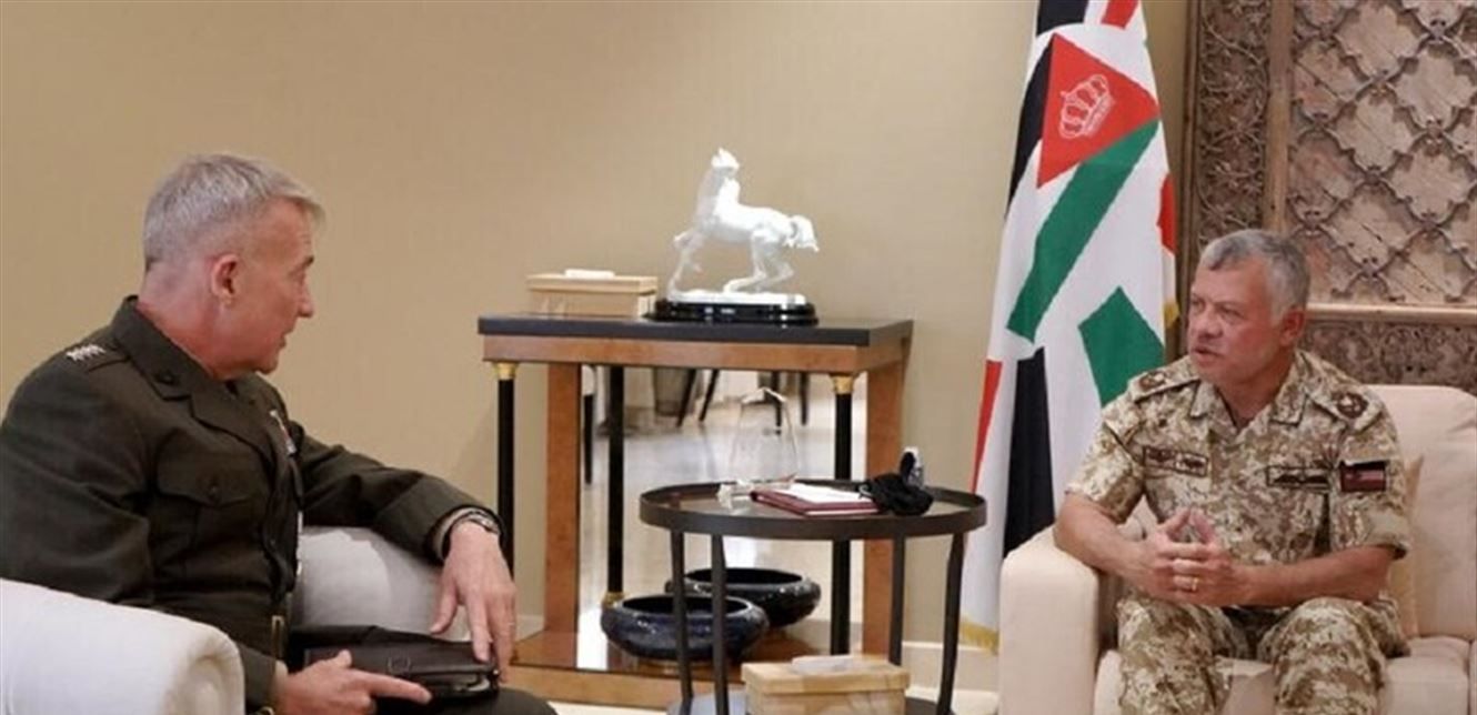 بحث العاهل الأردني، الملك عبدالله الثاني، مع قائد القيادة المركزية الأميركية الفريق أول، كينيث ماكينزي، التطورات الإقليمية، وفي مقدمتها القضية الفلسطينية.