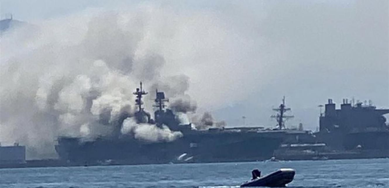 وأظهرت مشاهد مصورة لمكان الحريق العديد من رجال الإطفاء يقتحمون الدخان الكثيف المتصاعد من السفينة البرمائية الراسية في قاعدة سان دييغو البحرية.