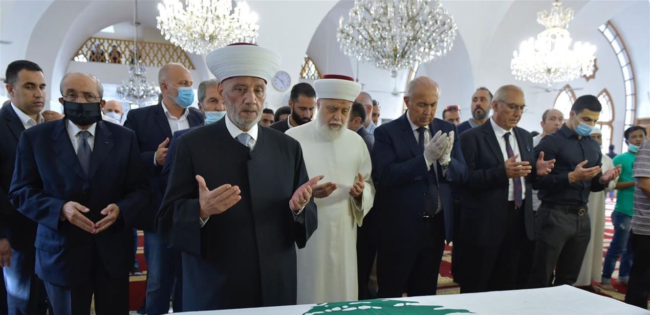 أم الصلاة على روح الفقيد مفتي الجمهورية اللبنانية الشيخ عبد اللطيف دريان، في حضور ابن شقيقه النائب فؤاد مخزومي، ممثل وزير الداخلية والبلديات العميد محمد فهمي والمدير العام لقوى الأمن الداخلي اللواء عماد عثمان قائد شرطة بيروت العميد محمد الأيوبي يرافقه وفد من ضباط المديرية العامة لقوى الأمن الداخلي، وفد من قيادة الجيش ممثلا قائد الجيش العماد جوزاف عون، وفد من الأمن العام ممثلا المدير العام للامن العام اللواء عباس ابراهيم، القاضي نديم زوين، القنصل سالم بيضون وعائلة الفقيد، إلى جانب شخصيات سياسية واجتماعية وإعلامية وعسكرية ودينية.