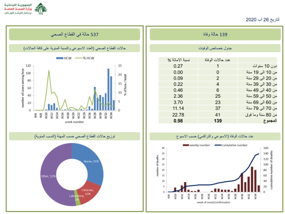 كما تم تسديل حالة وفاة واحدة خلال الـ24 ساعة الأخيرة ليصبح إجمالي الوفيات 139 حالة.