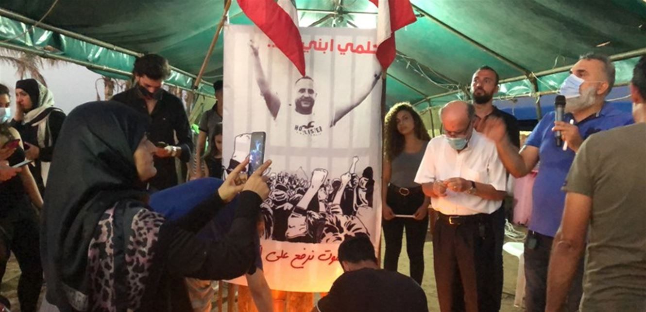 وبعد كلمة لشقيقة عباس أكدت فيها "اننا مستمرون وسنكمل المشوار الذي سار عليه شقيقي من أجل محاربة الإفساد وللمطالبة بدولة القانون لا المحاصصة"، تحدث الدكتور معن حلاوي باسم أصدقاء عباس فقال: "الشهيد عباس هو صديق لكل الثوار، لصور وبيروت وطرابلس، ونحن اليوم نتضامن مع قضيته"