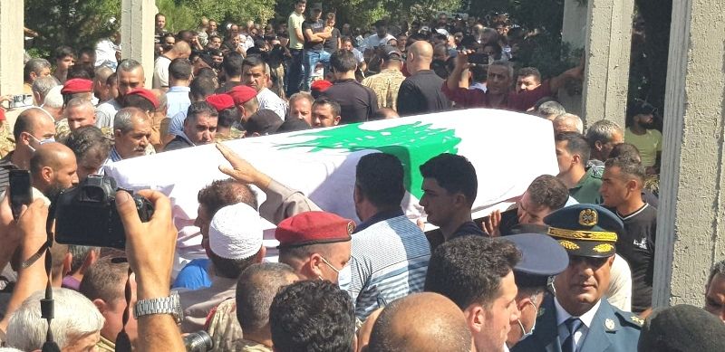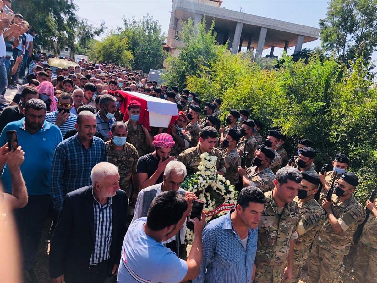 وألقى العقيد المهندس عمر بركات، ممثلا نائبة رئيس مجلس الوزراء وزيرة الدفاع الوطني في حكومة تصريف الأعمال زينة عكر وقائد الجيش العماد جوزاف عون، كلمة بالمناسبة، نوه فيها بالمزايا العسكرية والأخلاقية للشهيد، والتزامه الواجب العسكري، وقال: "يواجه وطننا سلسلة تحديات على مختلف المستويات، لا سيما الإقتصادية والمعيشية منها، وهي تلقي بثقلها على الوضع الأمني، ما يضاعف حجم المسؤولية الملقاة على عاتق الجيش. لكن هذه المؤسسة التي ولدت من رحم الوطن، وضمت تحت حمايتها جميع اللبنانيين دون استثناء، لن تتوانى عن النهوض بواجباتها كاملة، بخاصة مكافحة الإرهاب وتفكيك خلاياه".