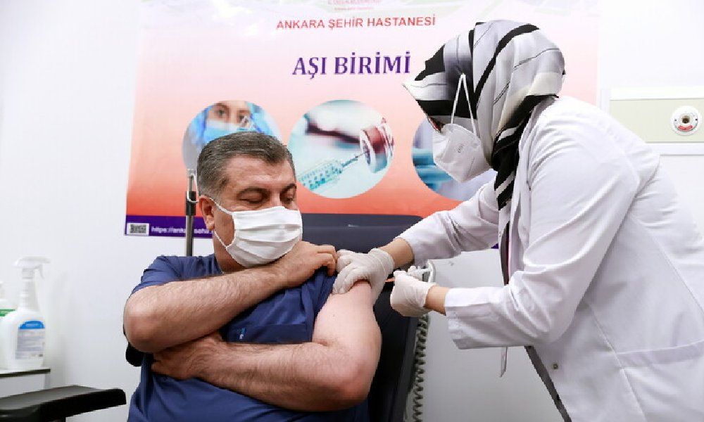 وبعد قليل من تصريحاته للمراسلين، تلقى قوجة جرعة من اللقاح الذي يعطى بطريق الحقن في بث حي أمام شاشات التلفزيون وتبعه أعضاء في المجلس العلمي الاستشاري التركي.