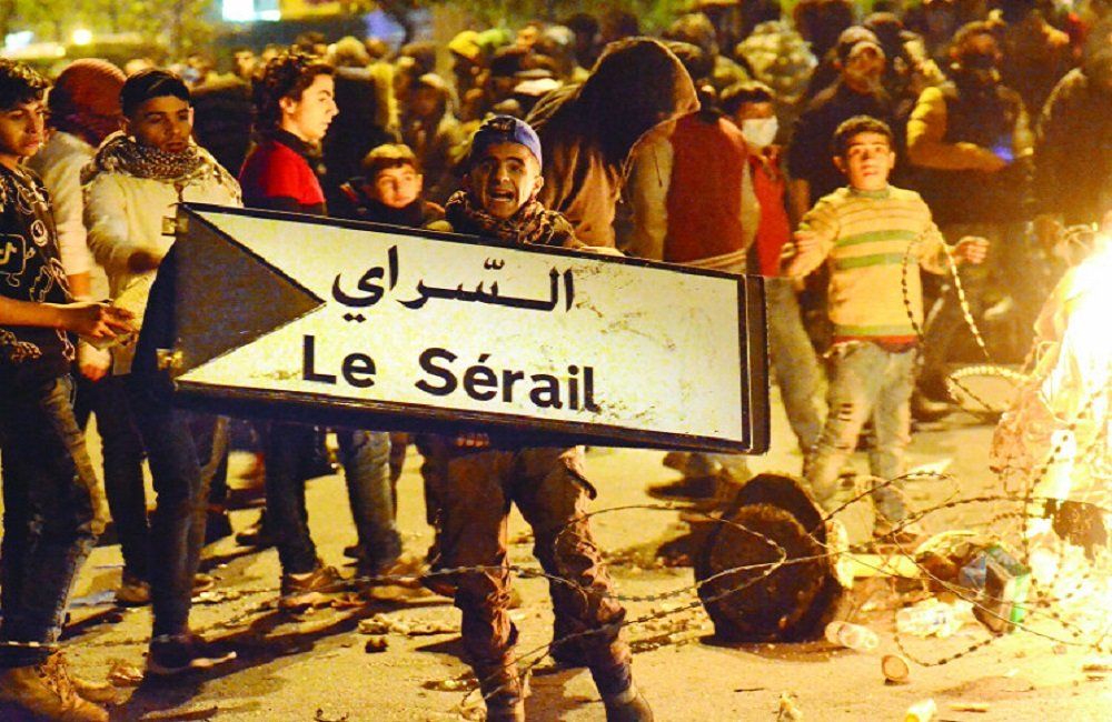 عمد عدد من الشبان فور انتهاء الكلمات التي ألقيت في ساحة النور خلال الاحتجاجات على تردي الاوضاع المعيشية والاقتصادية، وتضامنا مع أبناء المدينة، الى التوجه الى مدخل سرايا طرابلس، وأضرموا النيران بالاطارات أمام غرفة الحرس، ثم توجهوا الى الباب الخلفي للسرايا.