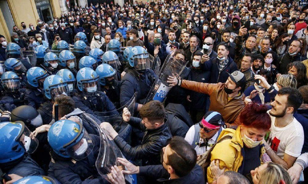 اشتبك محتجون مع الشرطة أمام البرلمان الإيطالي في روما، اليوم الثلاثاء، فيما رفض العاملون بالمطاعم والأعمال الأخرى المتضررة من الإغلاق قيود كوفيد-19.