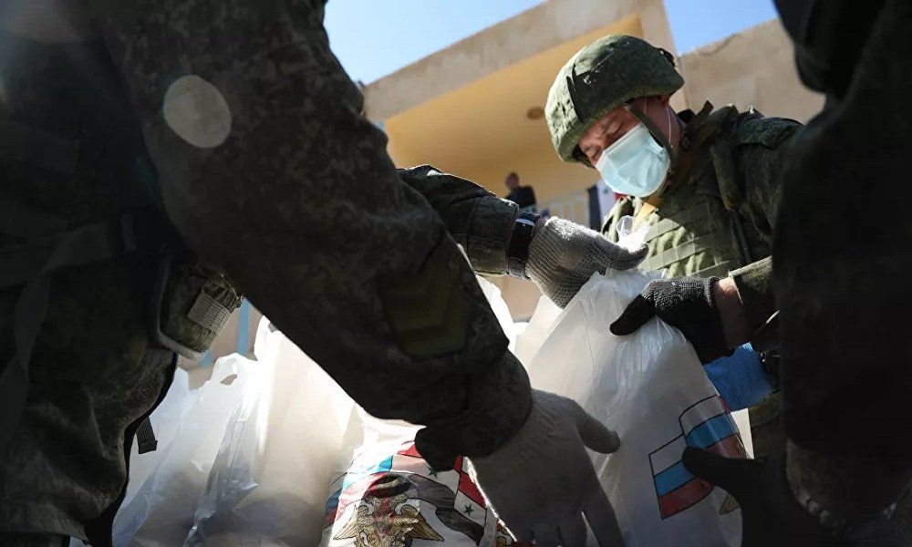 ووزع الجيش خلال العملية أكثر من 1000 مجموعة كتب عليها “روسيا معكم”. كما تحتوي مجموعات الطعام على أرز وحليب ودقيق وشاي وحليب مكثف.
