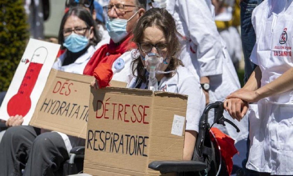 نظم أطباء مهتمون بمكافحة أضرار تدهور البيئة على الصحة العامة مسيرة إلى مقر منظمة الصحة العالمية بجنيف، لمطالبة السلطات الصحية بوضع التغير المناخي والتنوع البيئي على رأس أولوياتها.