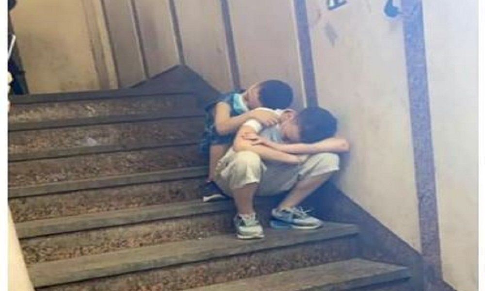 وانتشرت الصورة بشكل كثيف في وقت قياسي في إثارة استياء وغضب رواد التواصل الاجتماعي، حيث ظهر الطفلان يجلسان على السلم ويتكئ أحدهما على ظهر شقيقه ويبدو أنه غلبهما النعاس، ونام كل منهما متكأ على أخيه، منتظرين انتهاء النزاع بين ذويهما والعودة إلى المنزل.