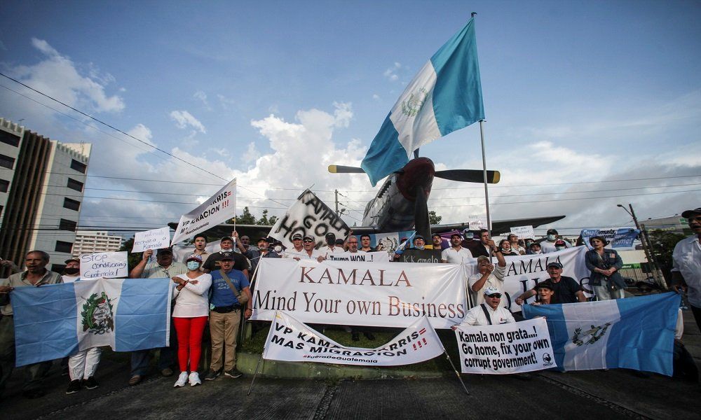 استقبلت كامالا هاريس نائبة الرئيس الأميركي جو بايدن في غواتيمالا باحتجاجات منددة بزيارتها، حيث طالبها المحتجون بـ”الاهتمام بشؤونها الخاصة والعودة إلى دارها”.