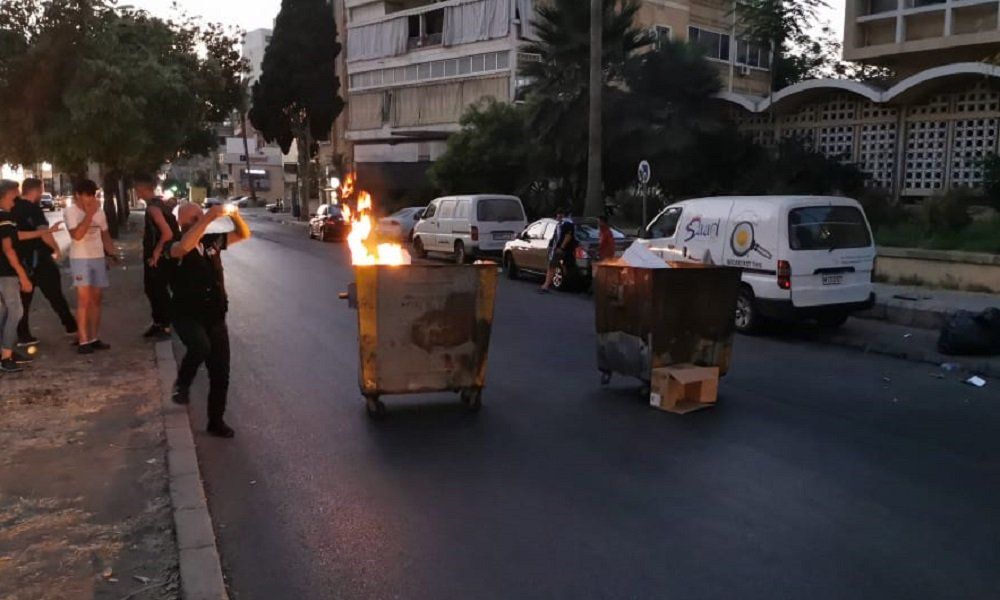 قطع محتجون غاضبون من تردي الأوضاع المعيشية والاقتصادية الطريق أمام شركة الكهرباء في صيدا، بمستوعبات النفايات، وكذلك أضرموا النيران فيها.