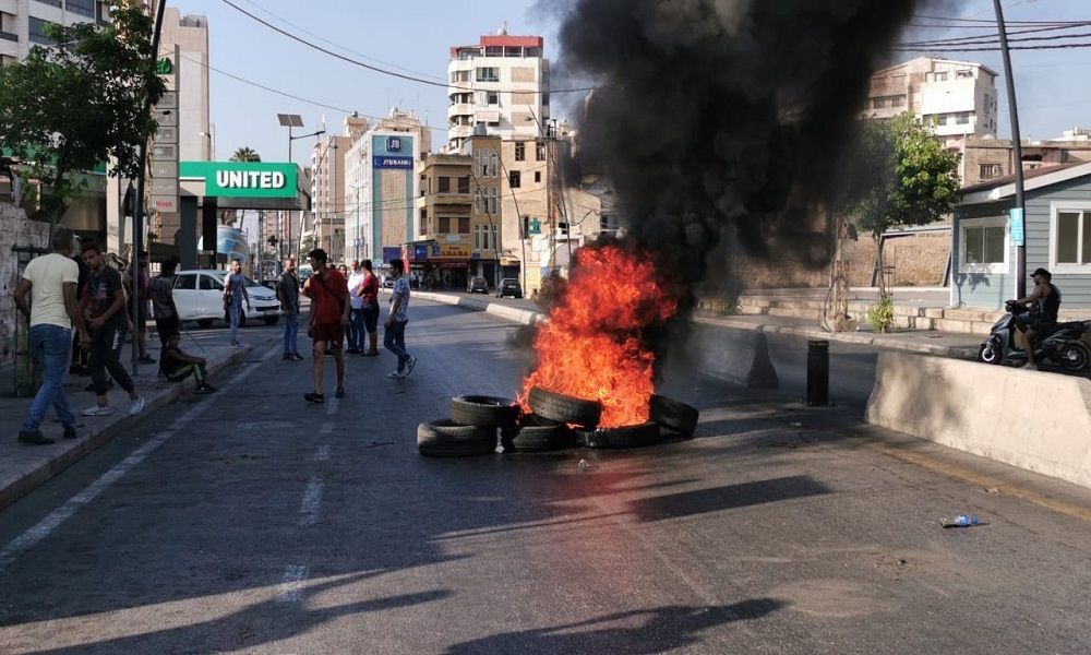 قطع عدد من المحتجين ساحة النجمة ورياض الصلح في مدينة صيدا بالاطارات المشتعلة تعبيرا عن غضبهم بسبب ما آلت اليه ظروفهم المعيشية “التي باتت مستحيلة مع تفلت سعر صرف الدولار مقابل الليرة اللبنانية من دون حسيب او رقيب”.