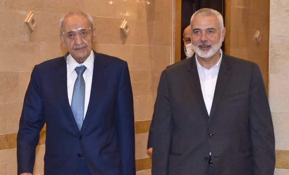 وبادل هنية بري بدوره قائلا: “جئنا اليوم لنهديك هذا النصر وسيف القدس وهو نصر نعي جيدا ماذا يعني للبنان واللبنانيين”.