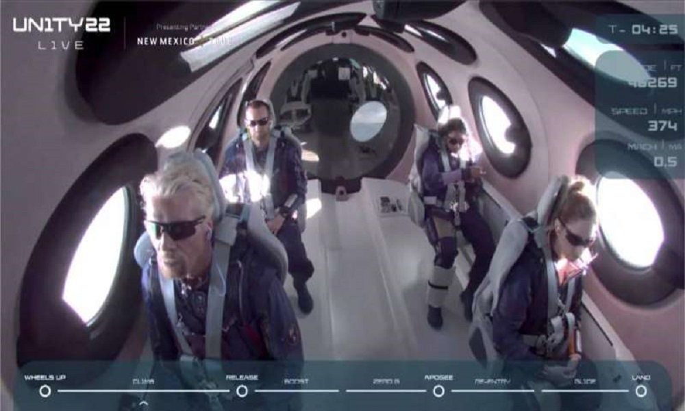 وإلى جتنب برانسون، انطلق ثلاثة ركاب آخرين وقائدين للمركبة لقضاء بضع دقائق في الفضاء، في رحلة يؤمل أن تشجع سياحة الفضاء الناشئة.