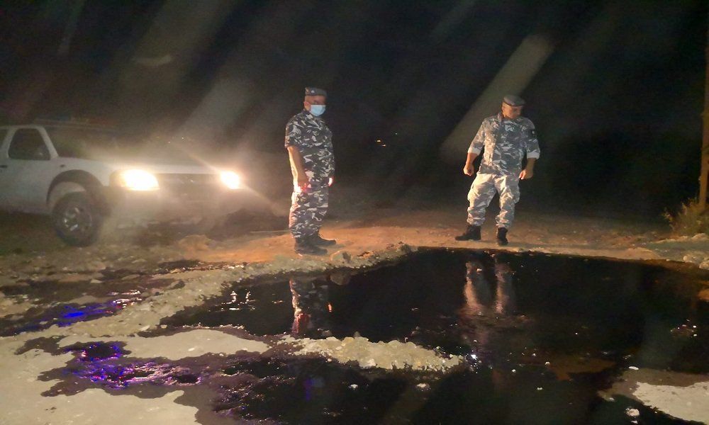 وعملت دورية لقوى الأمن الداخلي – مخفر العبدة على قطع الطريق المتفرعة نحو مطعم الديوان – خط البحر، لتأمين سلامة السائقين العابرين من مخاطر الانزلاق، بسبب كميات المواد النفطية المتسربة من خط أنبوب النفط المهترئ في هذه المحلة.