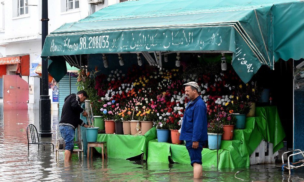 في بلدة تالة بشمال غرب تونس، قضى شابان يبلغان 20 و27 عاما بعد أن جرفت المياه سيارتهما، وفق المتحدث، معز تريعة.
